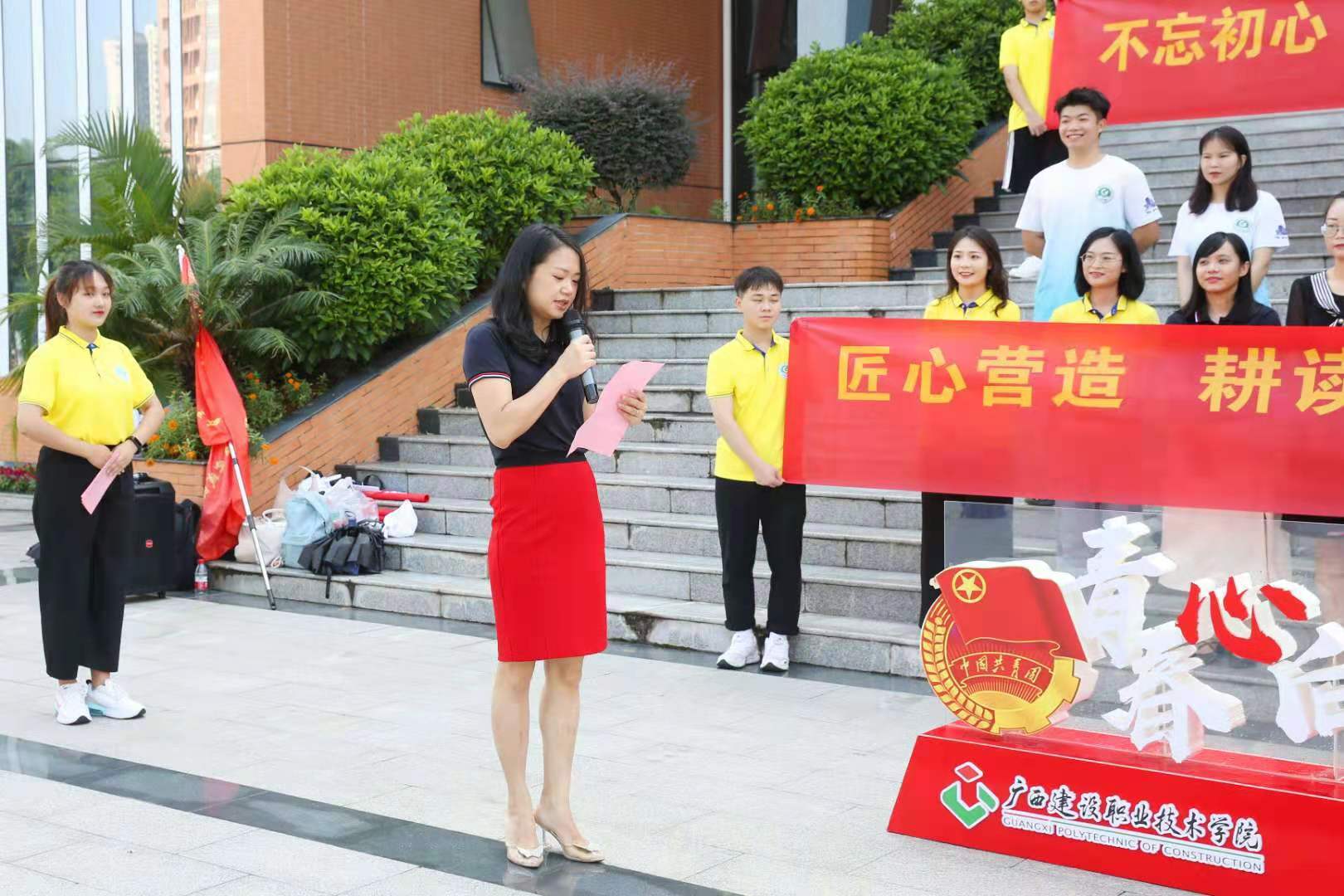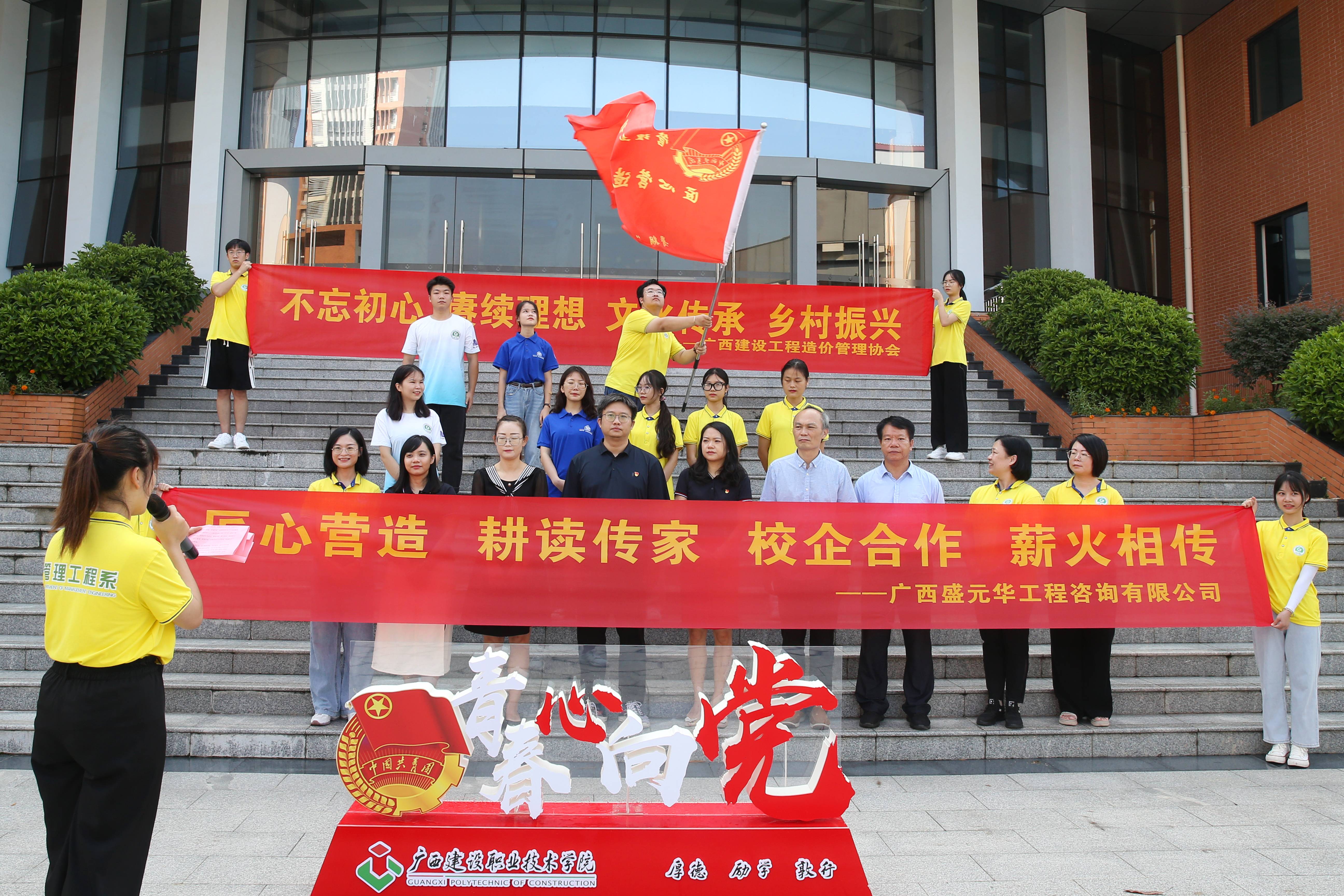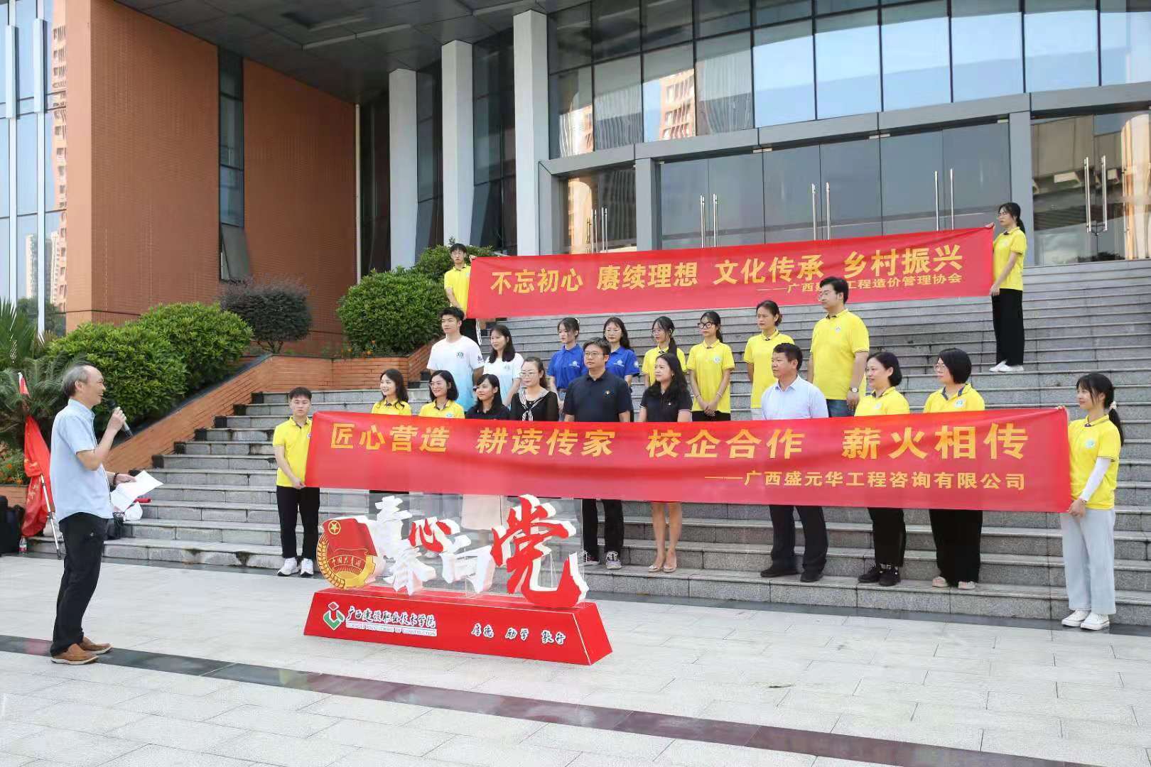 黃藝副總經(jīng)理在出征儀式上講話 據(jù)悉,我公司去年與廣西建設(shè)職業(yè)技術(shù)學(xué)院校企合作的“三下鄉(xiāng)”社會(huì)實(shí)踐活動(dòng)收到了良好的社會(huì)效果。再次出征啟程,依托學(xué)?!叭恕笔痉断灯脚_(tái),“雙高”院校建設(shè)工程管理專(zhuān)業(yè)群建設(shè),融合互聯(lián)網(wǎng)+項(xiàng)目打造,由廣西建設(shè)職業(yè)技術(shù)學(xué)院管理工程系、馬克思主義學(xué)院聯(lián)手組織,得到我公司與廣西建設(shè)工程造價(jià)管理協(xié)會(huì)全程指導(dǎo),既加強(qiáng)了校企合作聯(lián)系,又體現(xiàn)了行業(yè)企業(yè)的社會(huì)擔(dān)當(dāng),更借助實(shí)踐檢驗(yàn)育人實(shí)效,實(shí)現(xiàn)了學(xué)校、行業(yè)、企業(yè)“三線交融”,匯聚校行企力量,助力鄉(xiāng)村振興。