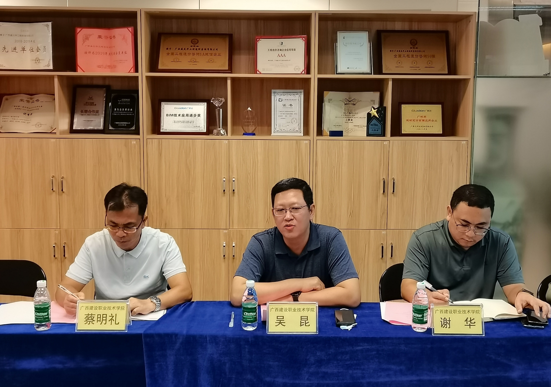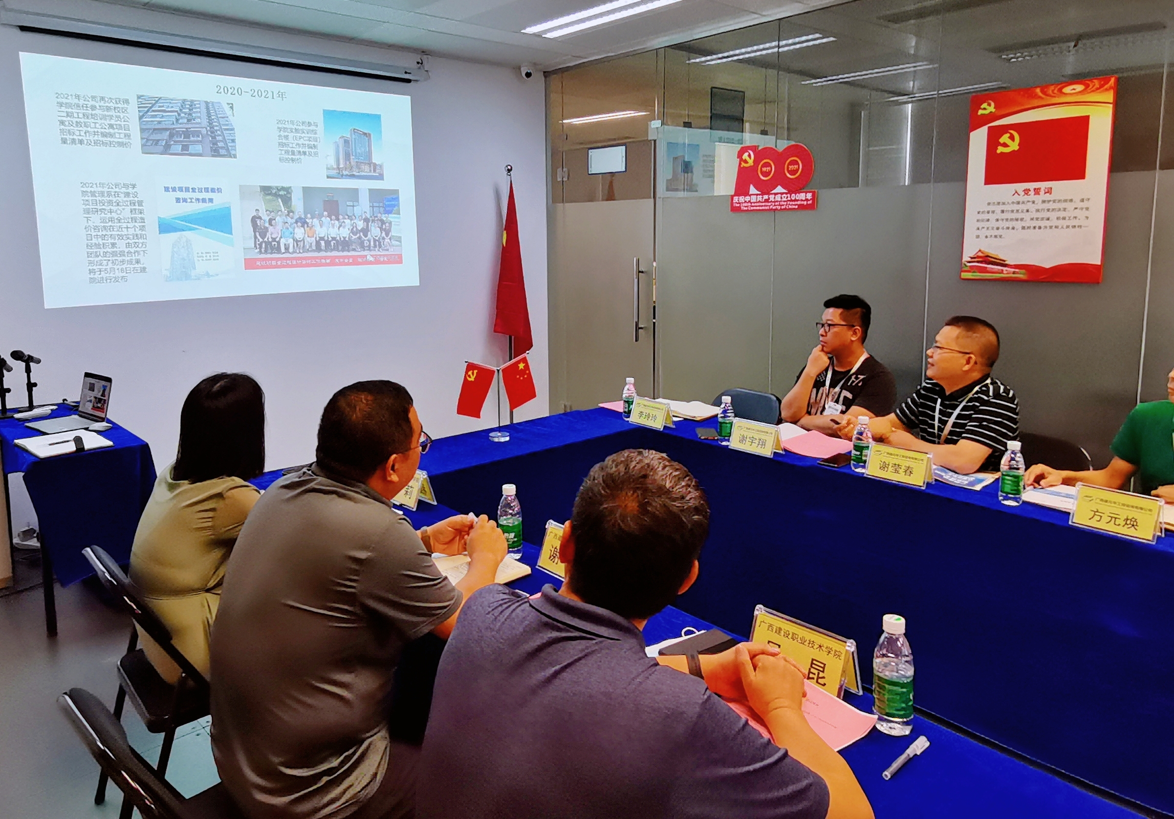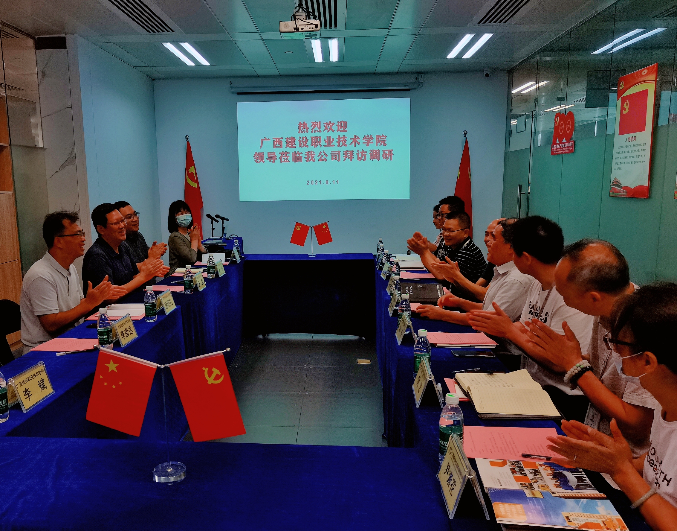 為進一步深化產教融合,促進校企合作全面發(fā)展,8月11日下午,由廣西建設職業(yè)技術學院黨委副書記、院長吳昆帶隊,一行共6人赴我公司拜訪調研。