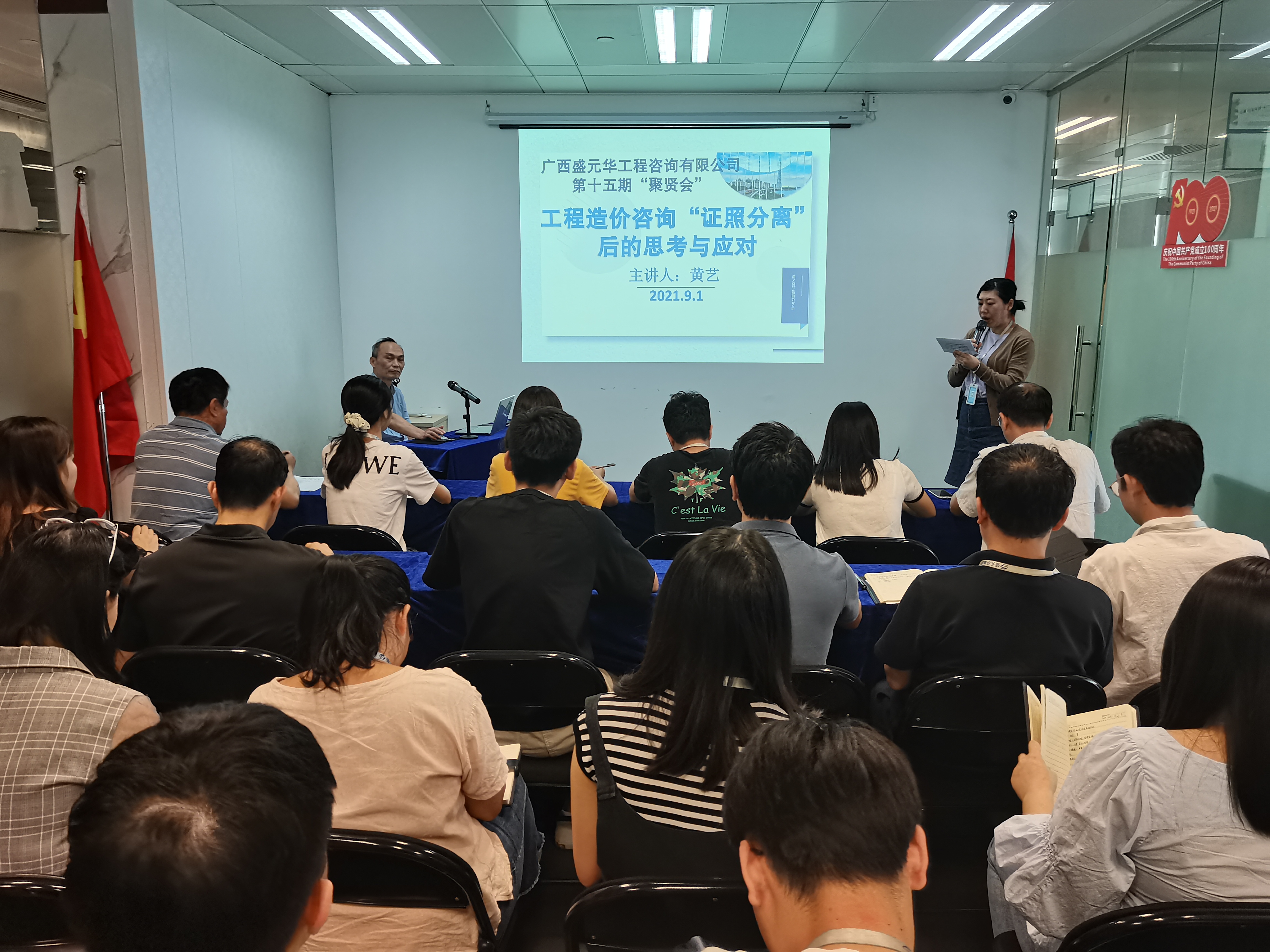 本期聚賢會(huì)主題為:工程造價(jià)咨詢“證照分離”后的思考與應(yīng)對(duì),由公司副總經(jīng)理黃藝作為主講人,就這一行業(yè)熱點(diǎn)問(wèn)題,與各位聚友們分享經(jīng)驗(yàn),帶領(lǐng)大家一起思考和探討問(wèn)題。
