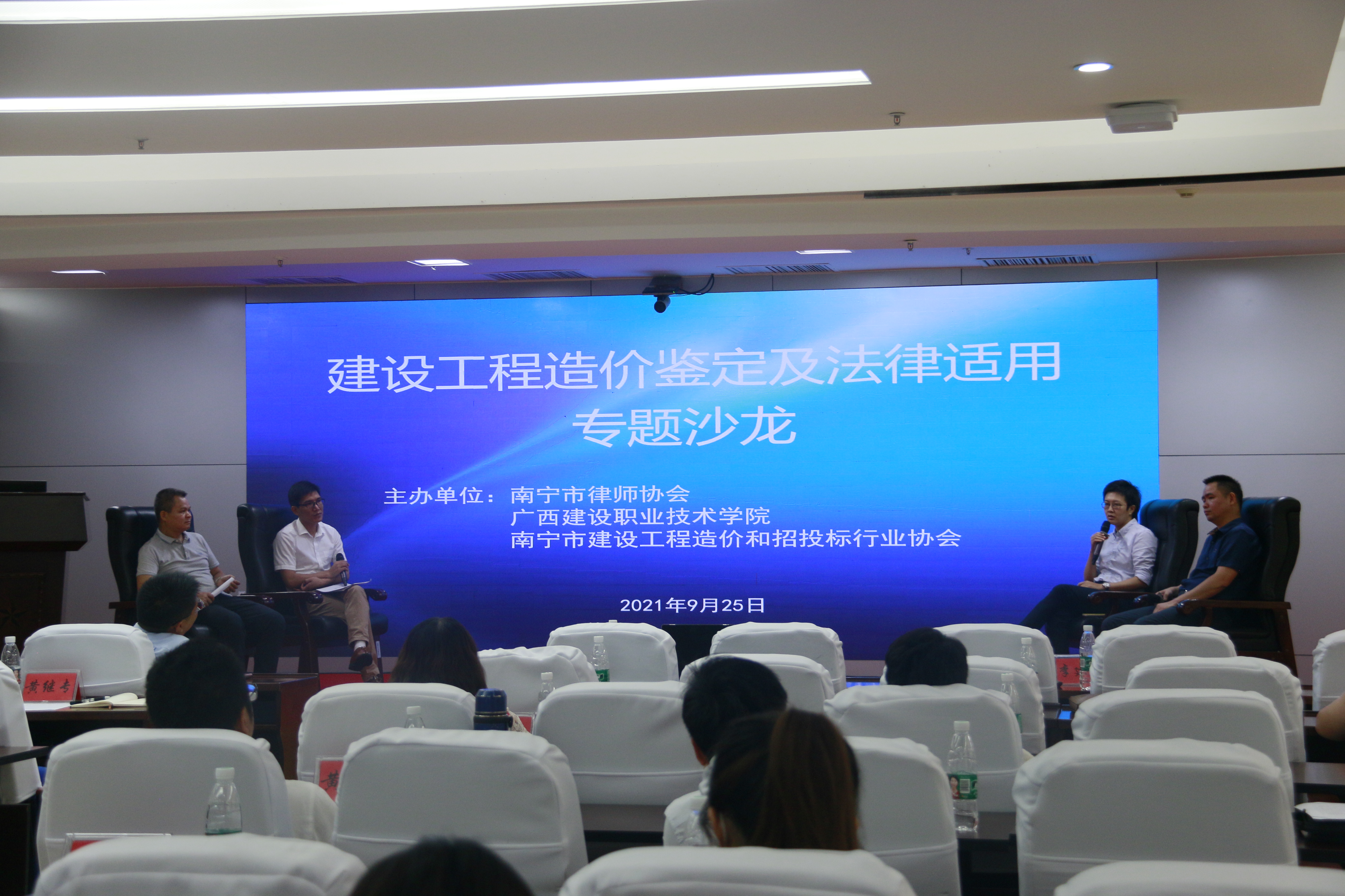 9月25日上午,南寧市律師協(xié)會與廣西建設(shè)職業(yè)技術(shù)學(xué)院、南寧市建設(shè)工程造價和招投標(biāo)行業(yè)協(xié)會共同開展的“建設(shè)工程造價鑒定及法律適用”專題沙龍活動在南寧市司法局成功召開。