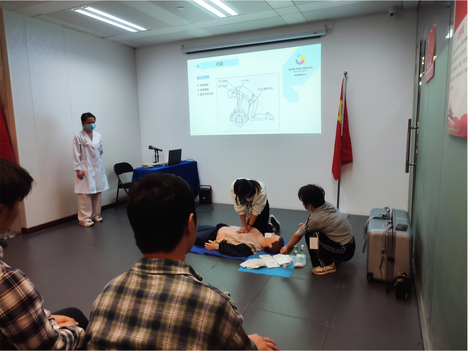 10月28日下午,我公司在會議室舉辦了一場關(guān)于急救知識的講座。人的生命是最可貴的,在現(xiàn)實生活中,許多意外狀況的發(fā)生令人猝不及防。隨著各種自然災(zāi)害的不斷發(fā)生及意外傷害事故的相應(yīng)增多,很多時候由于缺乏最初級的預(yù)防和救護(hù)知識,不少傷者第一時間得不到救護(hù)處理。如果能夠未雨綢繆,學(xué)習(xí)掌握簡單實用的基本急救方法,當(dāng)遇到意外傷害時生命健康就能得到及時有效的保護(hù),在危急情況下不會因“束手無策”而失去寶貴的生命。普及應(yīng)急救護(hù)科學(xué)知識,加強(qiáng)應(yīng)急救護(hù)技能培訓(xùn),是世界公認(rèn)的防范和降低突發(fā)事件風(fēng)險的有效方式。學(xué)習(xí)急救知識,對公司員工處理突發(fā)事件是有幫助的。進(jìn)行初級急救培訓(xùn),更能提高公司員工在突發(fā)事件中的自救、互救意識和能力,保護(hù)自身的生命安全健康。
